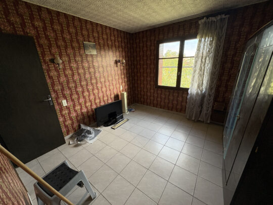 Elle se compose en rez-de-jardin d’un séjour lumineux, d’une cuisine indépendante avec accès direct à la buanderie, d’une chambre, d’une salle d’eau et d’un WC. À l’étage, deux chambres supplémentaires disposent chacune d’un point d’eau ainsi qu’un second WC.