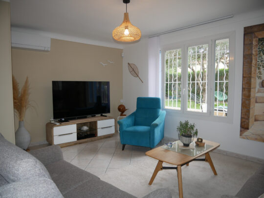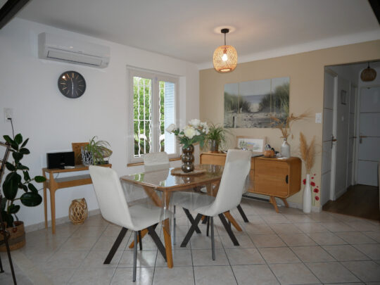 Offrant de beaux volumes et un cadre de vie agréable, la maison se compose d’une cuisine équipée d’un grand séjour lumineux, de deux belles chambres, d’une salle d’eau et d’un WC.