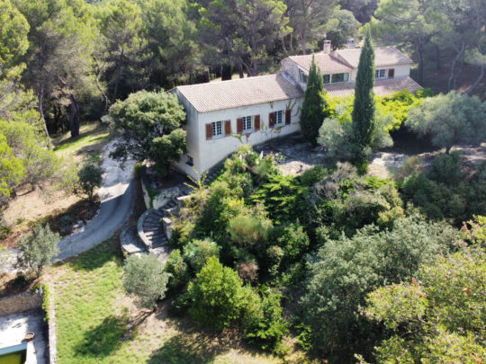 Dans un cadre verdoyant de plus de deux hectares, cette villa d’architecte offre un panorama unique sur la ville et le mythique Géant de Provence.
